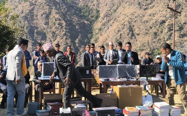 मेगा बैंकद्वारा दुर्गम विद्यालयलाई कम्प्युटर सहयोग
