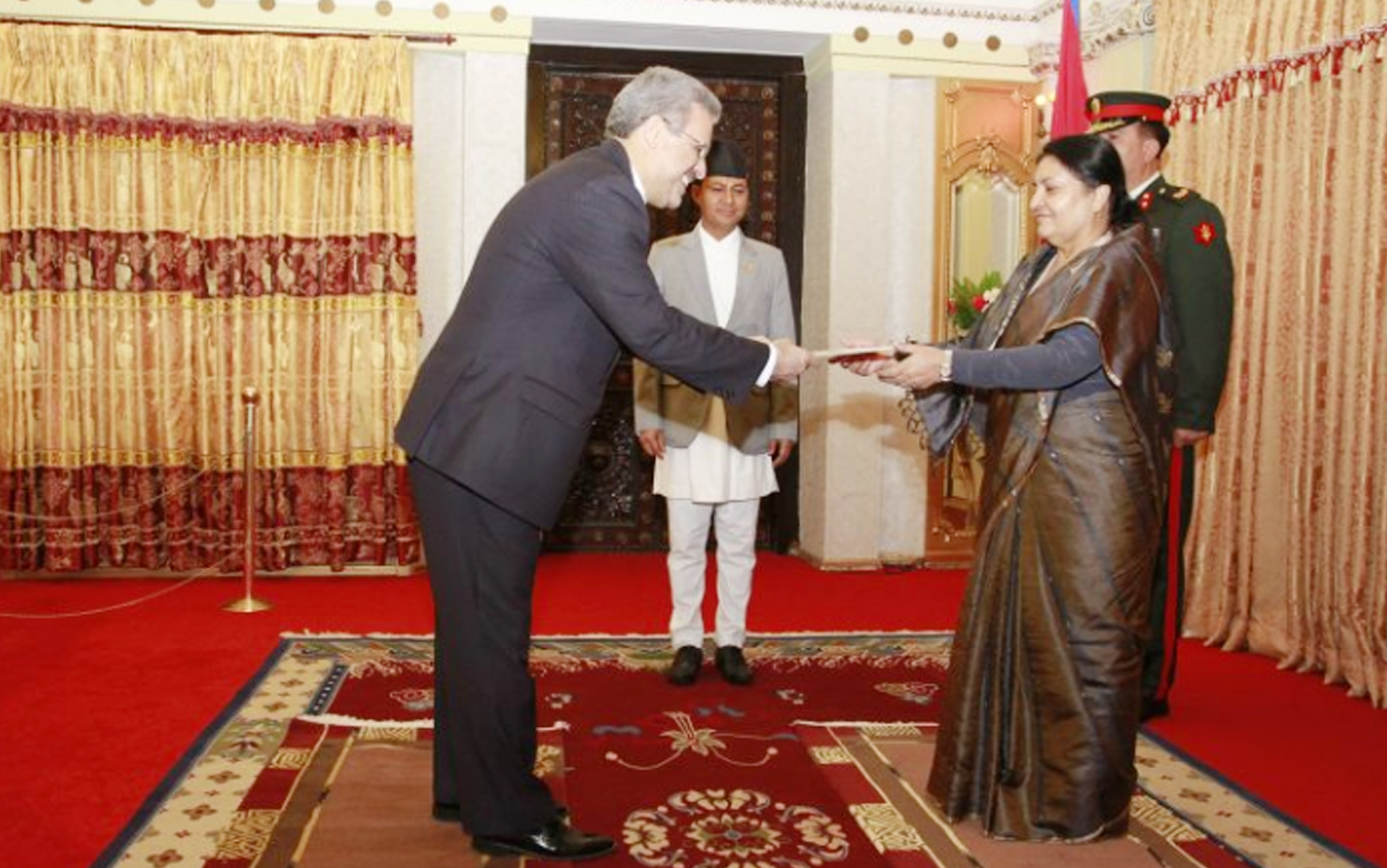 राष्ट्रपति भण्डारीसमक्ष ४ देशका राजदूतद्वारा ओहोदाको प्रमाणपत्र पेश