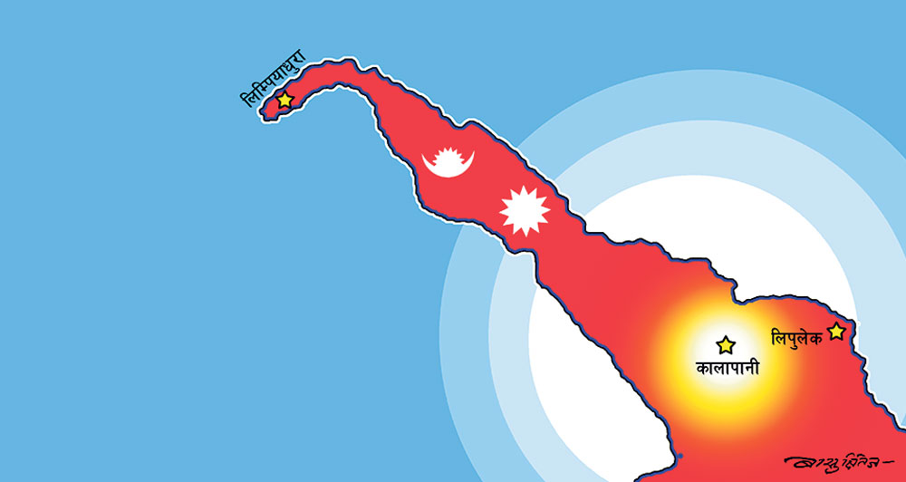 काठमाडौँ, २८ भदौ । नेपालले आफ्ना भूमि लिपुलेक, कालापानी र लिम्पियाधुरा समेटेर नयाँ नक्सा जारी गरे पनि ती ठाउँमा राज्यको उपस्थिति छैन । दार्चुलाको व्यास गाउँपालिका–१ मा पर्ने यी क्षेत्र ६० वर्षदेखि भारतद्वारा अतिक्रमित छन् । भारतले नछाडे पनि स्थानीय र प्रदेश सरकारले यी क्षेत्रको विकासलाई प्राथमिकतामा राख्न थालेका छन् । गाउँपालिकाले आफ्नो नीति तथा कार्यक्रमसहित…