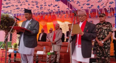 काठमाडौं,१६ वैशाख । नेकपा एमालेका अध्यक्ष तथा पूर्वप्रधानमन्त्री केपी शर्मा ओलीले सडकमा उफ्रेकै भरमा ‘कोशी प्रदेश’ नाम फिर्ता नहुने बताउनुभएको छ।। शनिबार पाँचथरको फिदिममा आयोजित कार्यकता भेलालाई सम्बोधन गर्दै ओलीले भने, दुईचार जना केटा सडकमा उफ्रँदैमा नामकरण परिवर्तनको सम्भावना छैन। म भन्न चहान्छु, जनताबाट दुई तिहार्इ मत ल्याएर नाम संशोधन गरेर देखाओ। अध्यक्ष ओलीले प्रदेशसभाबाट…