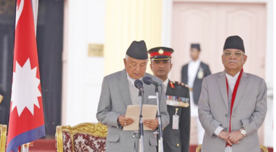 काठमाडौँ, २९ फागुन । निवर्तमान राष्ट्रपति विद्यादेवी भण्डारीको बिदाई भएको छ । आज उनलाई राष्टपादति निवास शीतलनिवासबाट बिदाई गरिएको हो । राष्ट्रपति रामचन्द्र पौडेलले पद तथा गोपनियताको शपथ लिएसँगै राष्ट्रपति भण्डारीको बिदाई गरिएको हो । उनलाई नेपाली सेनाले २१ टोपको सलामी दिएर बिदाई गरिएको छ।