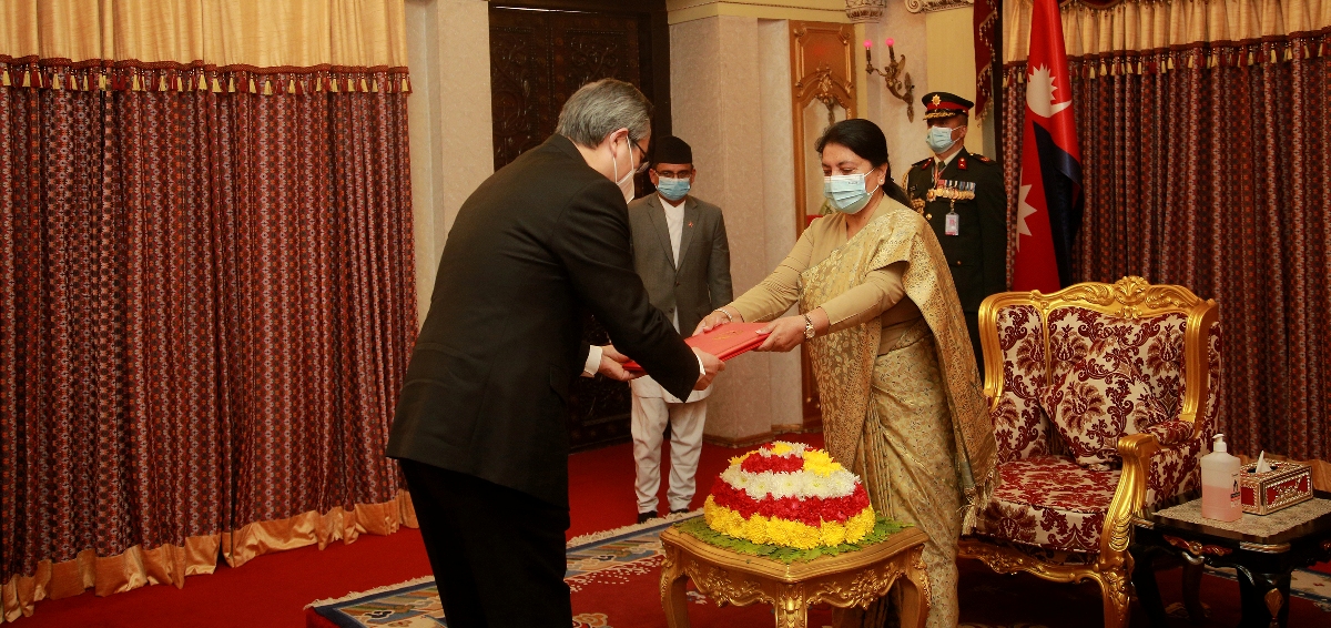 काठमाडौँ, २९ पौष । नेपालका लागि नवनियुक्त चिनियाँ राजदूत चेन सङले राष्ट्रपति विद्यादेवी भण्डारी समक्ष ओहोदाको प्रमाणपत्र बुझाएका छन् । केही दिनअघि मात्र चीनबाट आएका राजदूत चेन सङले शुक्रबार राष्ट्रपतिसमक्ष आफ्नो ओहोदाको प्रमाणपत्र बुझाएका हुन् ।