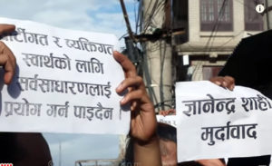 भक्तपुर, १५ साउन । पछिल्लो समय सरकार विरुद्ध ठूला ठूला कुरा गरी चर्चामा आएका ज्ञानेन्द्र शाहीलाई भक्तपुरका युवाले धिमे बाजा बजाएर कार्यक्रम स्थलबाट लखेटेका छन् । भक्तपुरको सूर्यविनायकमा गएर वर्तमान सरकार विरुद्ध विभिन्न प्रकारका अनावश्यक कुराहरु गरेको र त्यसले गर्दा सरकार तथा समाजमा वितृष्णा, मनमुटा सिजर्ना गराई देश तथा समाजमा अराजकता फैलाउने घृणीत कार्य गरेको…