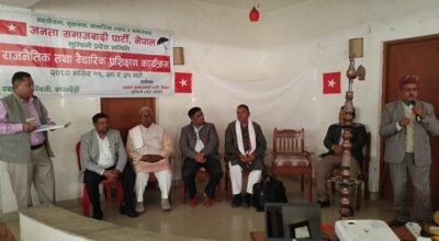 सप्तरी, २२ मंसिर । जनता समाजवादी पार्टी (जसपा) नेपालसम्बद्ध समाजवादी युवा संघको सप्तरी जिल्ला समिति पुनर्गन भएको छ । राजविराजस्थित संगठनको जिल्ला कार्यालयमा आयोजित समितिको विस्तारित बैठकले केदार प्रसाद यादवको नेतृत्वमा ३१ सदस्यीय समिति पुनर्गठन गरेकोे हो । पार्टीको जिल्ला समितिले यादवलाई कार्यवाहक अध्यक्षको जिम्मेवारी तोकेसँगै संगठनको बैठक बसी पदाधिकारी तथा सदस्यहरु चयन भएका हुन्…