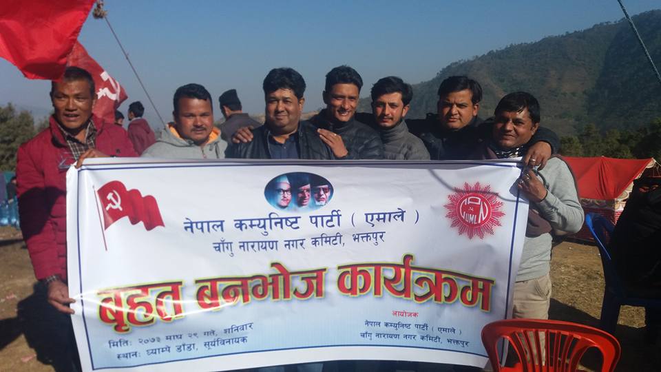 भक्तपुर,२९ माघ । नेकपा एमाले चाँगुनारायण नगर कमिटीको आयोजनामा वृहत बनभोज कार्यक्रम सम्पन्न भयो । सूर्यविनायक नगरपालिकाको रमणीय पर्यटकीय स्थल ध्याम्पे डाँडामा आयोजना गरेको सो कार्यक्रम नगर कमिटीका अध्यक्ष रमेस बुढाथोकीको अध्यक्षतामा सम्पन्न भएको थियो ।