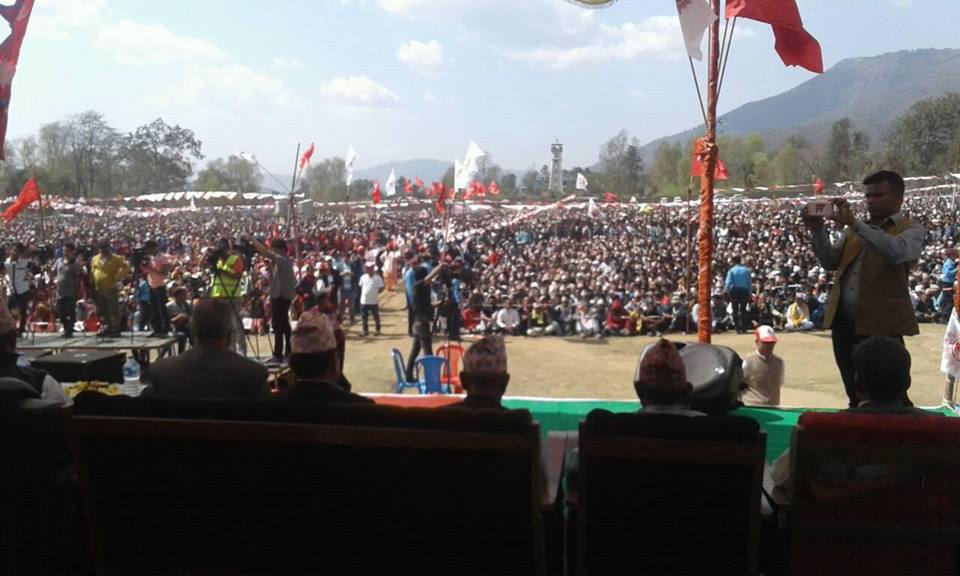 सभालाई सम्बोधन गर्दै पूर्व प्रधानमन्त्री तथा वरिष्ठ नेता माधवकुमार नेपालले संविधान संशोधन र चनुावसँग कुनै साइनो नभएको वताउँदै चुनाव गर्न सरकारले खुट्टा कमाइरहेको वताए । ‘चुनावको मिति घोषणा गरे पनि चुनावलाई संविधान संशोधनसँग जोडेर सरकारले चुनाव गर्न खुट्टा कमाइरहेको छ’ नेपालले भने, ‘यदि चुनाव गर्न सक्नुहुन्न भने तपाईंलाई कुर्सीमा बस्ने अधिकार छैन । तुरुन्तै सत्ता छोड्नुस् ।’