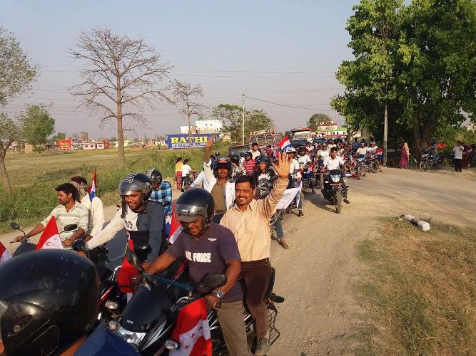 तरुण दललाई निर्वाचन शिवराजमा मोटरसाइकल चढेर आयो