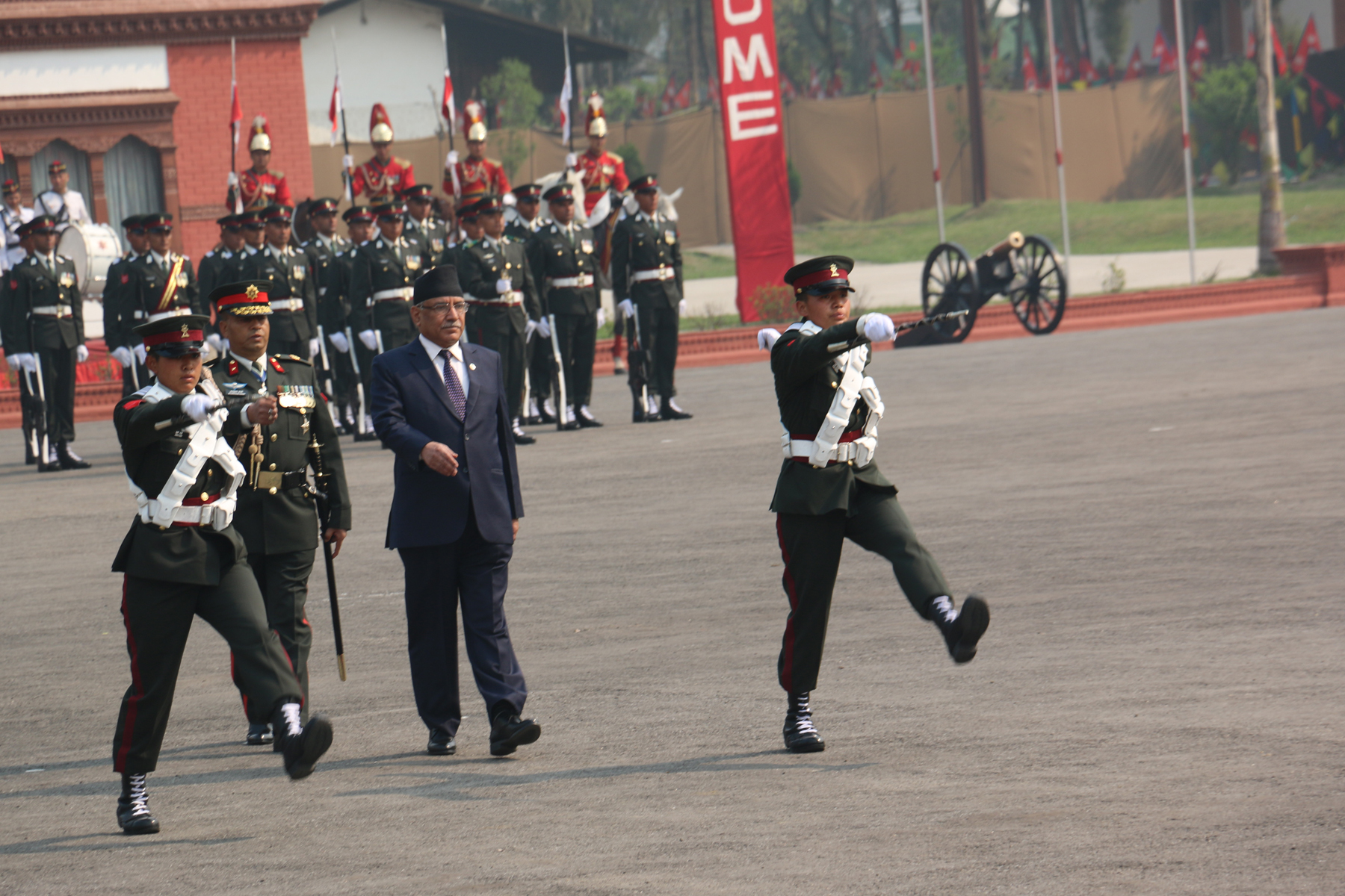 भक्तपुरको खरीपाटीस्थित नेपाली सैनिक प्रतिष्ठानमा आज आयोजित सि।सं ५५ अधिकृत क्याडेट तालिम र सि।सं ४५ पदिक÷हुँद्दा क्याडेट तालिममा सहभागीलाई आयुक्त पद प्रदान कार्यक्रममा प्रधानमन्त्रीले राज्यको निर्दिष्ट सिद्धान्तको पालना गर्दै राष्ट्र, राष्ट्रियता र राष्ट्रवासीको सेवक भई आफूलाई सुम्पिएको जिम्मेवारी उदाहरणीय रुपमा प्रस्तुत गर्न सक्षम हुनुपर्नेमा जोड दिनुभयो ।