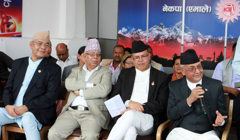 ‘सचिवालयका नेताह जिल्ला–जिल्ला पुगेर फर्किनुभएको छ । म आफैँ पनि ६ जिल्ला घुमेर फर्किएको छु’ पोखरेलले भने, ‘एमालेलाई पहिलो नम्बरमा स्थापित गर्ने गरी हामीले ध्यान केन्द्रित गरेका छौँ ।’ एमालेले मुख्य प्रतिस्पर्धा कांग्रेससँग हुने जनाउँदै ६० देखि ६२ सिट जित्ने दाबी गर्दै आएको छ । राजमार्ग आसपासका उत्तरी क्षेत्रमा कांग्रेस र माओवादी केन्द्रको गठबन्धन बन्न नसकेकाले कांग्रेससँगको प्रतिस्पर्धामा आफूलाई लाभ हुने एमालेको विश्लेषण रहेको नयाँपत्रिकाले लेखेको छ ।