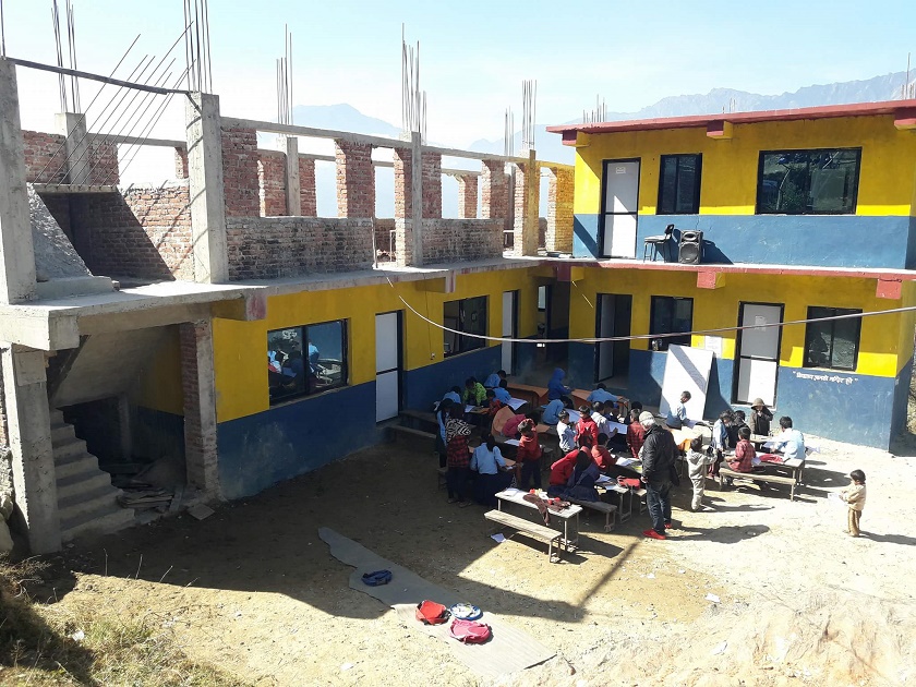भूकम्पले पूर्ण क्षति पुगेको विद्यालय भवन अहिले निर्माण भएर सञ्चालनमा आएको छ । भूकम्पपछि करिब दुई वर्षसम्म अस्थायी सिकाई केन्द्रमा बसेर पढाई हुने गरेकोमा अहिले निर्माण गरिन लागिएको १० ओटा कोठामध्ये ७ ओटा कोठा निर्माण भैसकेको छ।