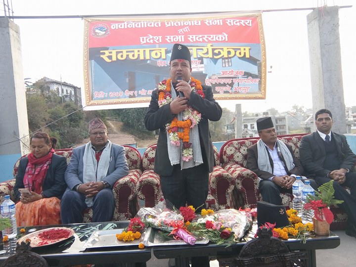 सूर्यविनायक नगरपालिकाले आयोजना गरेको बधाई तथा सम्मान कार्यक्रममा नेता बस्नेतले मैले तपाईहरुलाई मात्रै होइन मध्यपुर नगरपालिकालाई पनि भक्तपुरमा आएका पर्यटकबाट उठाईएको प्रवेश शुल्कको रकम सिगो भक्तपुरको विकासका लागि खर्च गर्नु पर्छ ।