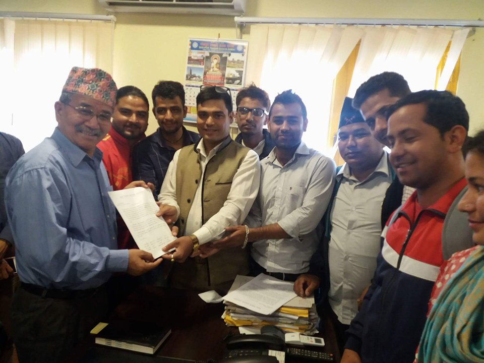बैशाख १६, ललितपुर । संस्थागत विद्यालय शुल्क निर्धारण मापदण्ड निर्देशिका २०७२ विपरित विद्यालयले चर्को शुल्क लिई आम जनताको ढाड सेक्ने काम गरेको भन्दै संयुक्त विद्यार्थी संगठनले आज ललितपुर महानगरपालिकाका प्रमुख चिरबाबु महर्जनलाई ध्यानाकर्षण पत्र बुझाएका छन् ।