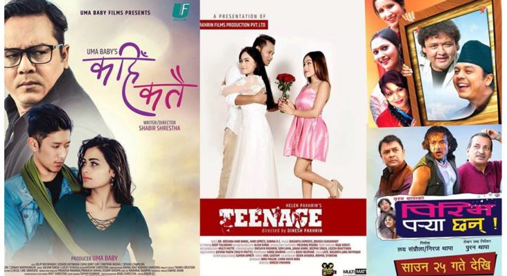 साउन २५, काठमाडौं । फ्राइडे रिलीज आज सिनेमा हलहरुमा ‘कहिँ कतै, ‘टिनएज’ र ‘पिरिम पर्‍या छन्’ फिल्महरुले व्यापारिक प्रतिस्पर्धा गरिरहेको छ ।
