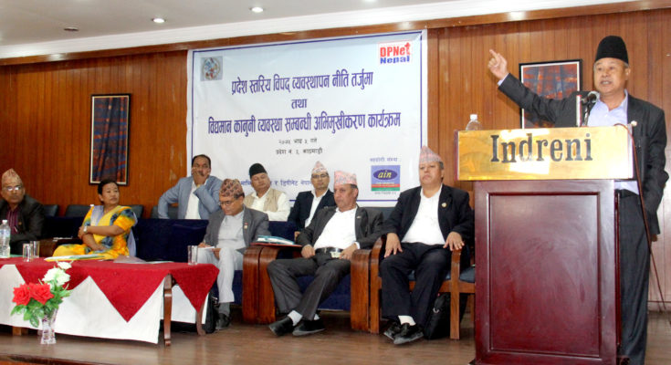 मंगलवारका संघीय प्रदेश नं ३ को आयोजना तथा प्रकोप पूूर्बतयारी संजाल नेपालको संयूक्त आयोजनामा प्रदेश स्तरिय विपद व्यवस्थापन निती तर्जुमा तथा विद्ममान कानुनी व्यवस्था सम्वन्धी अभिमुखीकरण कार्यक्रममा वोल्दै सभामुख श्रेष्ठले ऐन, कानुन तथा नियमावली बनाउँदा तथा कार्यान्वयनका सवालमा कुनै पनि गैरजिम्मेवारी तरिकाले अघि वढ्नु नहुने तर्क प्रस्तुत गरका छन् ।