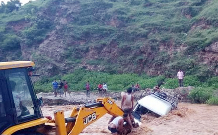 भदौ ८, सल्यान । छिन्चु-जाजरकोट सडकखण्ड अन्तर्गत सल्यानको बनगाड खोलाको बाढीले माइक्रो बस बगाएको छ भने गाडीमा रहेका यात्रुले हामफालेर ज्यान वचाएका छन् ।