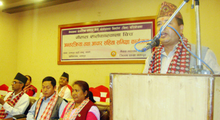 कार्यक्रममा वोल्दै गैरसरकारी संस्था नेपाल भक्तपुर शाखाका अध्यक्ष शोम शर्मा बजगाईले गैरसरकारी संस्थालाई जनमानसले हेर्ने दृष्टिकोणमा परिवर्तन गराउनु पर्ने बताएका छन् । एनजिओलाई डलरको खेती गर्ने, कुनै पनि संस्था भने पछि जिल्ला स्तरको हुने र सामाजिक संस्था भनेपछि मात्र समाजको काम गर्ने भन्ने सर्वसाधारणका बुझाई रहेको र त्यसलाई सोचमा परिवर्तन गराई गैरसरकारी संस्था पनि सामाजिक कार्य गर्ने संस्था हो भनि चेतनाको विकास गराउनु अहिलेको अनिवार्य आवश्यकता भएको बताएका छन् । त्यस्तै उनले गैरसहकारी संस्था सम्बन्धी निर्माण भइरहेका कानुनहरुलाई लचिलोका साथ संसदमा प्रस्तुत भईदिन सांसदहरुलाई आग्रह समेत गरेका छन् ।