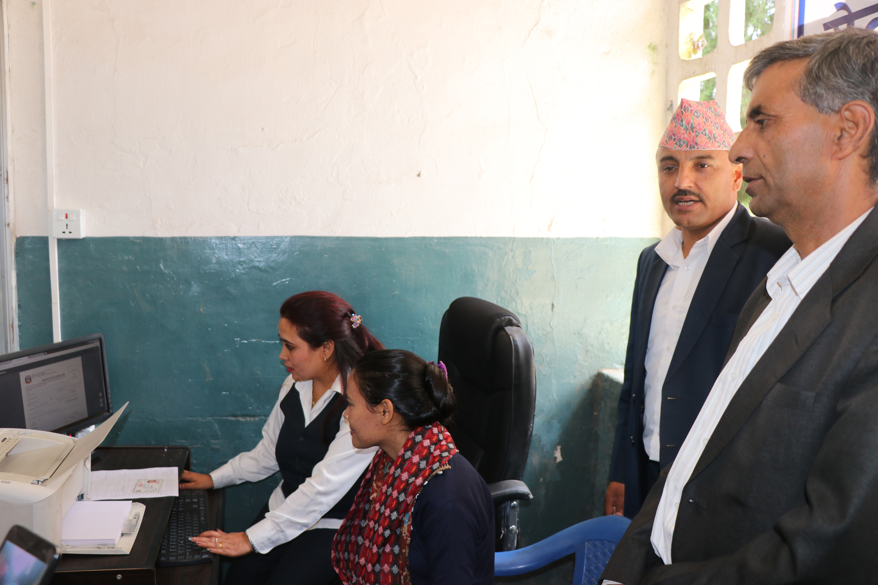 जिल्ला समन्वय समिति भक्तपुरका प्रमुख नवराज गेलालले आज राहदानी बनाउँन आउनु भएकी पहिलो सेवाग्राही सविना केसीलाई खादा ओढाएर स्वागत गर्दै सेवाको शुभारम्भ गर्नुभएको हो ।