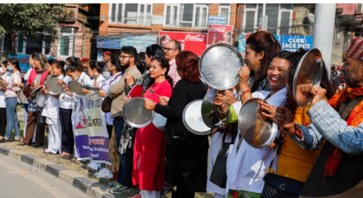 युवा नर्स सञ्जालले निर्मला पन्तको हत्यारालाई पक्राउ गरी कारवाही गर्न माग गर्दै माइतीघर मण्डलामा सरकारविरुद्ध थाल र चम्चा ठटाएर प्रर्दशन गरेको हो ।