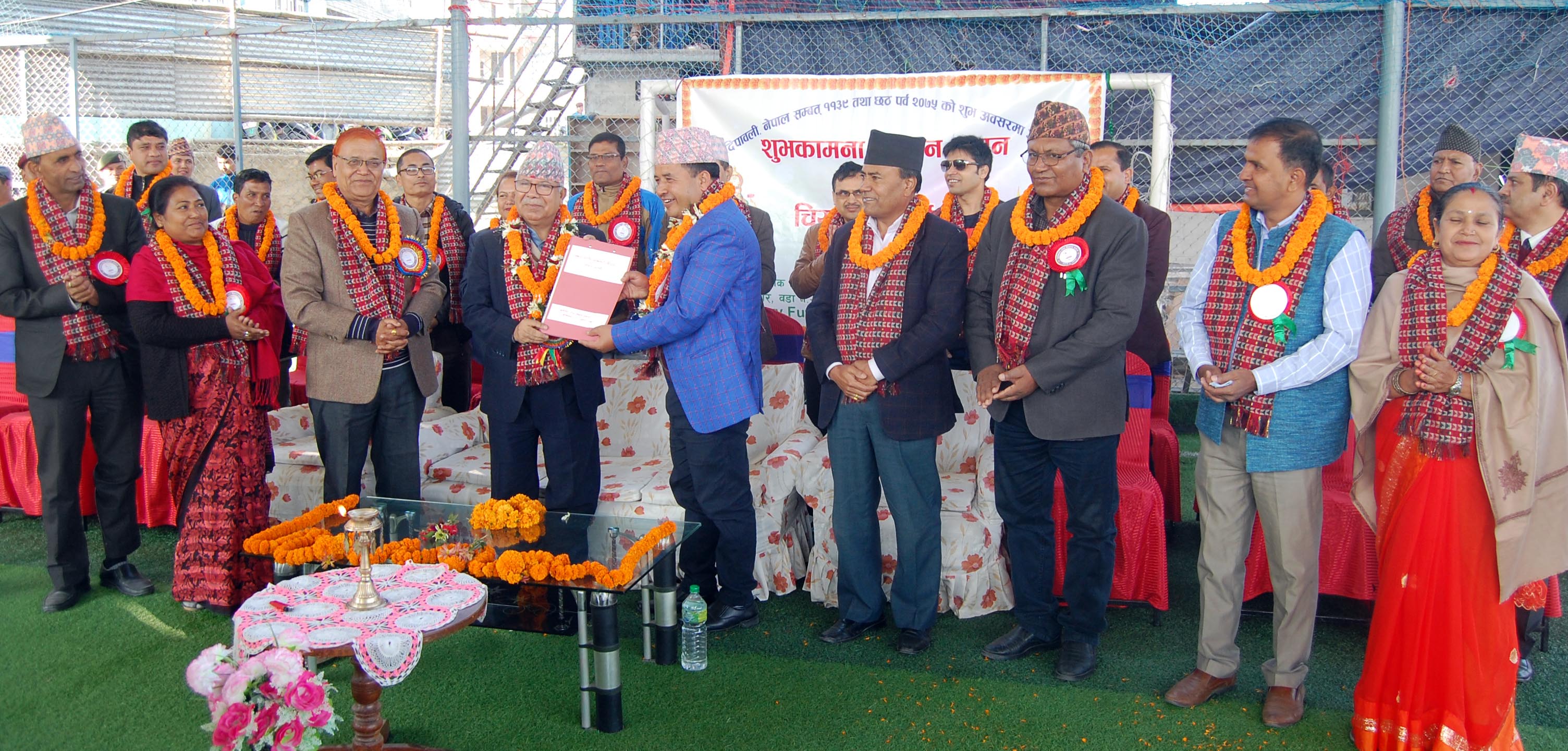 भक्तपुर जिल्लाको सूर्यविनायक वडा नं. ५ मा सूर्यनगर टोल विकास समाजले आयोजना गरेको दिपावली, छठ, नेपाल सम्वत् ११३९ तथा ल्होछार पर्वको शुभकामना तथा चियापान कार्यक्रममा बोल्दै बरिष्ठ नेता नेपालले कोटेश्वर, मनोहरा लगायतका काठमाडौँ उपत्यकामा आगामी दुई वर्षभत्रमा सवै बाटोहरु पिच गरिसक्ने बताउनुभयो ।