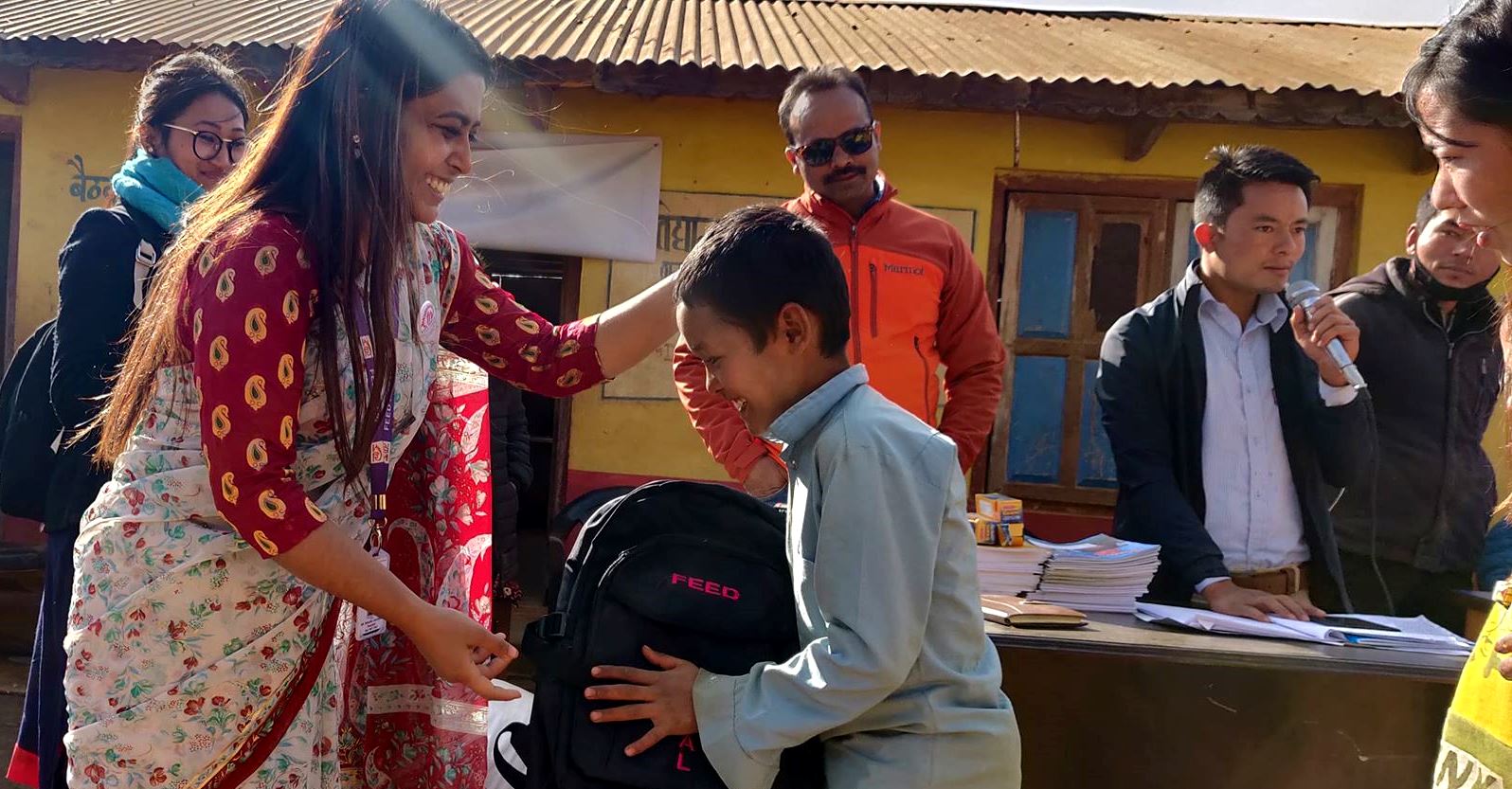 ‘विद्यालय फर्क’ अभियान अन्तर्गत स्कुलव्याग र शैक्षिक सामाग्री र कक्षा १, ९ र १० का विद्यार्थीलाई शैक्षिक सामाग्री वितरण गरेको फिड नेपालकी अध्यक्ष आयुषा जोन्छेले बताइन ।