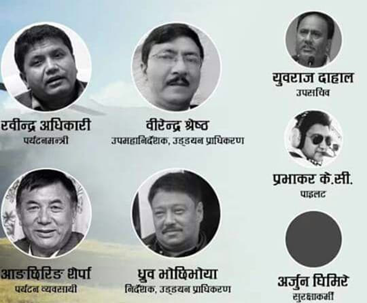 दुर्घटनामा मन्त्री अधिकारी, यति एयरलाइन्सका प्रबन्ध निर्देशक आङछिरिङ शेर्पा, नेपाल नागरिक उड्डयन प्राधिकरणका उपमहानिर्देशक वीरेन्द्रप्रसाद श्रेष्ठ र निर्देशक धु्रव भोछिभोया, प्रधानमन्त्री तथा मन्त्रिपरिषद् कार्यालयका उपसचिव युवराज दाहाल, हेलिकप्टरका क्याप्टेन प्रभाकर केसी र मन्त्री अधिकारीका सुरक्षाकर्मी अर्जुनकुमार घिमिरेको निधन भएको थियो ।