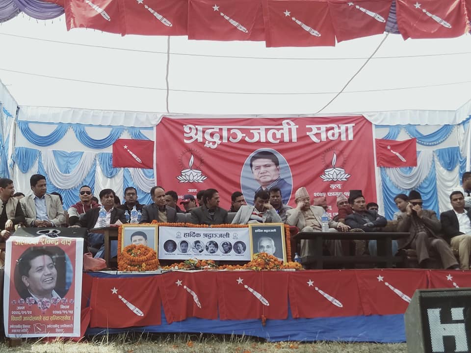 काठमाडौँ, २३ फागुन । सत्तारुढ दल नेपाल कम्युनिष्ट पार्टी (नेकपा)को विद्यार्थी संगठन अनेरास्ववियुले हेलिकप्टर दुर्घटनामा परि मृत्यु हुनुभएका संस्कृति, पर्यटन तथा नागरिक उड्डयन मन्त्री रवीन्द्र अधिकारीको नाममा पार्क बनाउने घोषणा गरेको छ ।