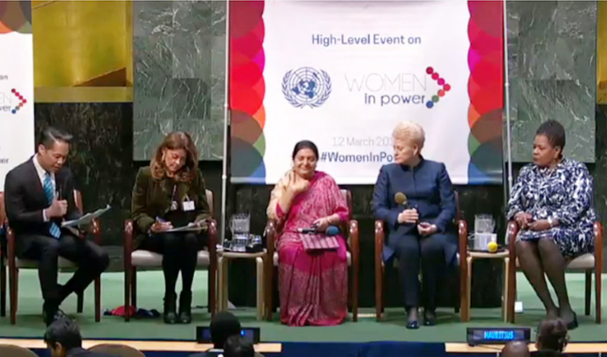 संयुक्त राष्ट्रसङ्घीय आयोगको ६३ औँ अधिवेशनका अवसरमा राष्ट्र सङ्घका महासभाका अध्यक्ष मारिया फर्नान्डा एस्पिनोसा गार्सेसले न्यूयोर्कस्थित महासभा कक्षमा आयोजना गरेको ‘शक्तिमा महिला’ मूल विषयअन्तर्गत उच्चस्तरीय एक सत्रमा बोल्दै राष्ट्रपति भण्डारीले महिलासम्बन्धी कानूनी र संवैधानिक परिवर्तन गर्दा तथा महिलाको अस्तित्वलाई स्वीकार गर्दा मुलुकमा निकै ठूलो परिवर्तन गर्न सकिने बताएकी छन् ।