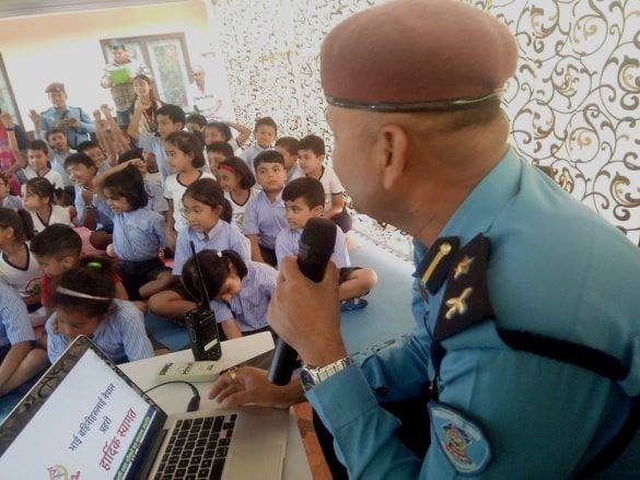 समुदाय—प्रहरी साझेदारी कार्यक्रम अन्तर्गत महानगरीय प्रहरी वृत्त नयाँबानेश्वर र सामुदायीक प्रहरी सेवा बानेश्वर १० को आयोजनामा भएको प्रशिक्षण कार्यक्रममा वृत्तका प्रमुख, डिएसपि गोविन्दराज काफ्लेले सडक सुरक्षाबारे कक्षा लिँदै गर्दा आधाभन्दा बढी विद्यार्थी हात उठाएर आफ्नो कुरा राख्न खोज्दथे । उनीहरु नेपाली र अंग्रेजी दुबै भाषमा प्रश्न गर्न खप्पिस थिए ।