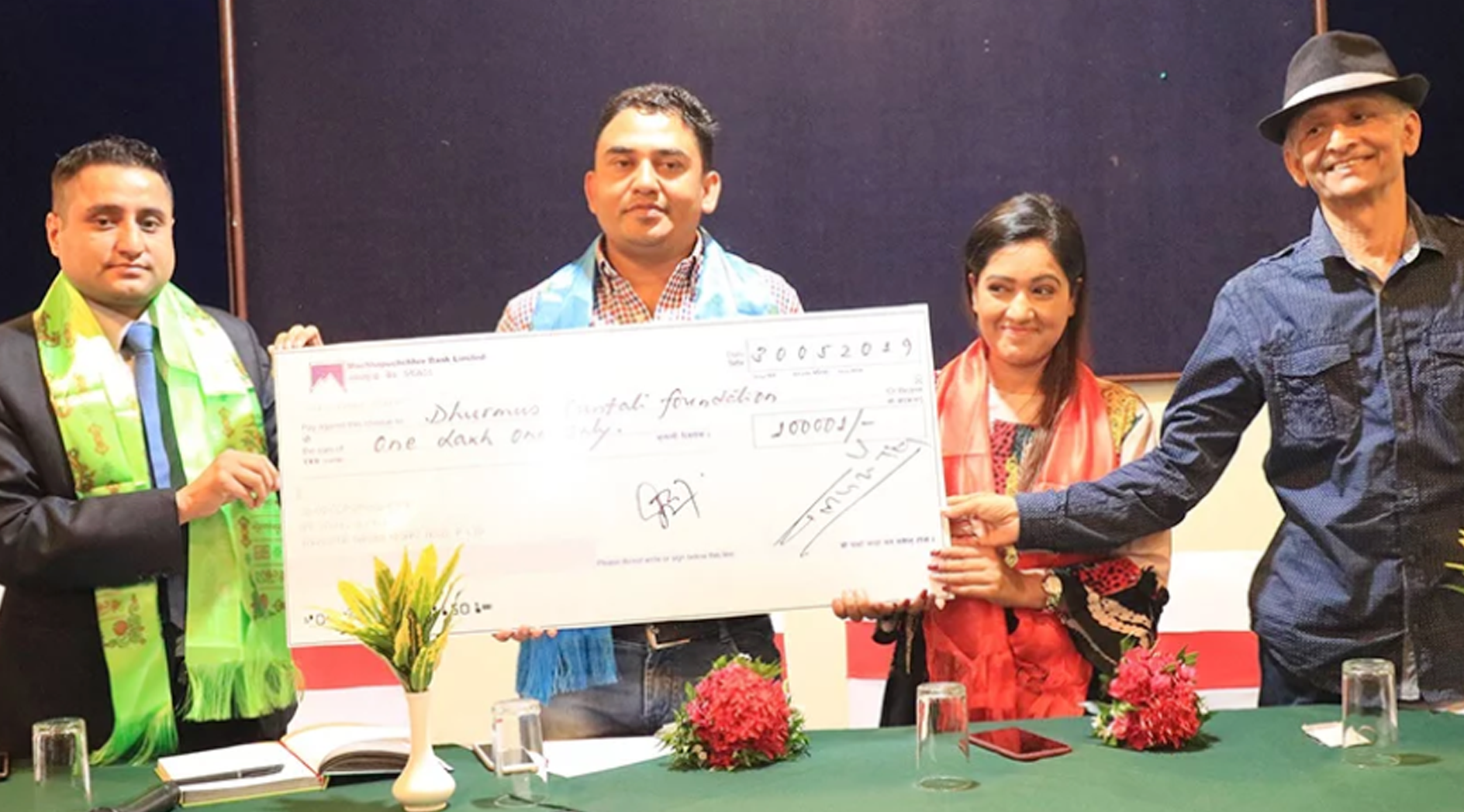बिहीबार होटल गार्डेनमा आयोजित कार्यक्रममा होटलका अपरेसन म्यानेजर दीपेन्द्र पोखरेलले रंगशाला निर्माणका लागी सीताराम कट्टेललाई १ लाखको चेक हस्तान्तरण गरेका छन ।