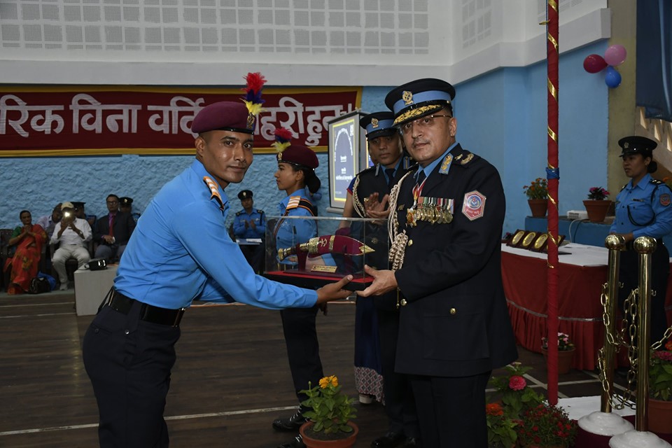 उक्त अवसरमा प्रहरी अतिरिक्त महानिरीक्षक पुष्कर कार्कीले उत्कृष्ट प्रशिक्षार्थीहरुलाई पुरस्कार तथा प्रमाणपत्र वितरण गर्दै नेपाल प्रहरीको प्रशिक्षण प्रणालीभित्र संचालन हुने जुनसुकै दर्जाको आधारभूत तालिम महत्वपूर्ण र विशेष हुने बताउनुभयो । आधारभूत तालिमको माध्यमबाट एउटा नागरिक व्यवसायिक प्रहरीमा रुपान्तरण हुने उहाँले उल्लेख गर्नुभयो ।