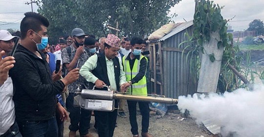 बस्नेतले भनेतीन दिनदेखि हामीले मेसिन लिएर लामखुट्टे बढि हुने बस्ती, पानी जमेका ठाउँ,मोटर ग्यारेज, टायरहरु भएको ठाउँमा पुगिरहेका छौं । स्थानीय साथीहरुले आग्रह गरेकाले धेरैजसो ठाउँमा म आफैं गइरहेको छु । यो निकै प्रभावकारी भएको छ । सरकारलाई गाली गर्ने भन्दा(आफ्नो ठाउँबाट यति गर्न सकिन्छ ।अनलाइनखबरबाट
