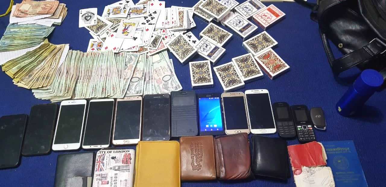 चाडपर्व लक्षित विशेष सुरक्षा योजना अनुसार अपरेसन चलाएको प्रहरीले उक्त जुवाखालबाट नगद एक लाख तेईस हजार आठ सय पैतिस रुपैयाँसहित १० जनालाई पक्राउ गरिएको डिएसपि रेग्मीले बताए । जुवा खालबाट प्रहरीले १२ थान मोवाइल, ६ थान पर्स, ब्लु बुक, एकथान नवकान्तिपुर सहकारीको डिपोजिट बुक, १३ बुक तास, एक थान महिलाको ब्याग लगायतका सामग्री पनि वरामद गरेको छ ।