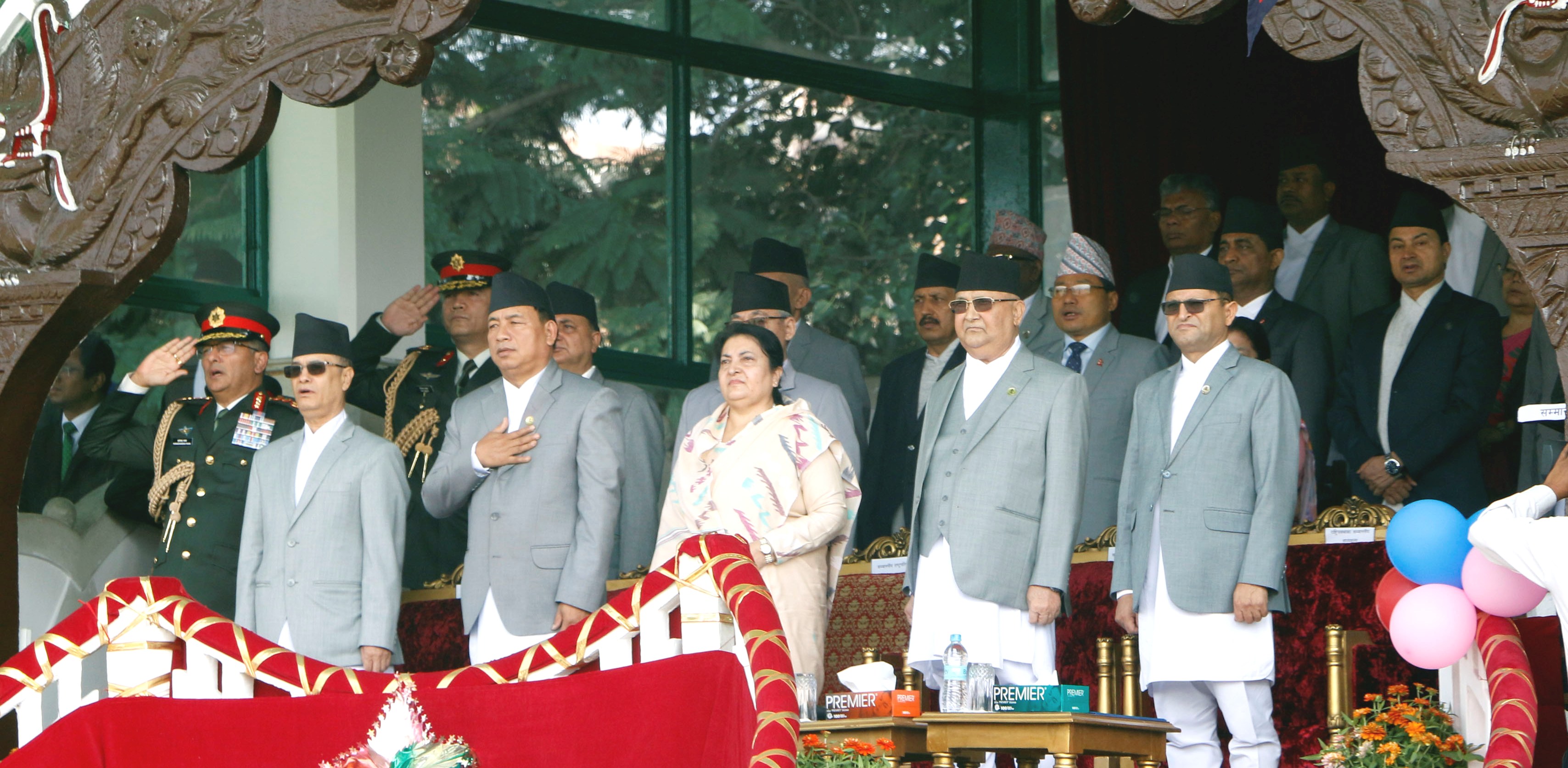 पाँचौँ संविधान तथा राष्ट्रिय दिवसका अवसरमा नेपाली सैनिक मञ्च, टुँडिखेलमा आज आयोजित मूल समारोहलाई सम्बोधन गर्दै प्रधानमन्त्री ओलीले संविधान कार्यान्वयनका क्रममा कुनै अप्ठ्यारो आइलागे क्रमशः पन्छाउँदै परिमार्जन गर्न सकिने पनि दोहो¥याउनुभयो । उहाँले भन्नुभयो, “हाम्रो लोकतन्त्र फराकिलो छ, कतिपय अतिवादी सोच र संस्थालाई पनि यसले यसै अवधिमा मूल धारमा फर्काउन सफल भएको छ । जो अझै बाटो भुलिरहेका छन्, उनीहरुलाई पनि मूल धारमा आउन ढिला नगर्न मेरो आग्रह छ