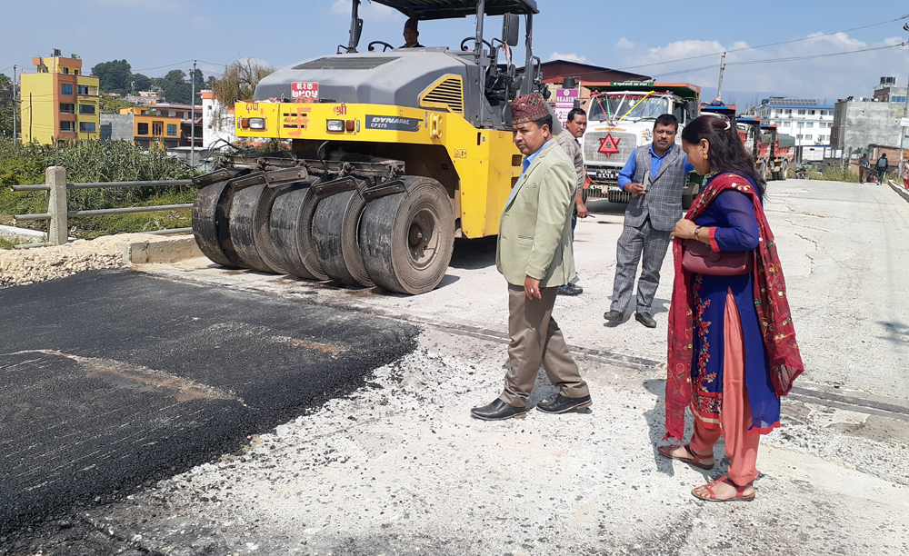 सांसद बस्नेतद्वारा भक्तपुरमा कालोपत्रे भइरहेको ठाउँको अनुगमन