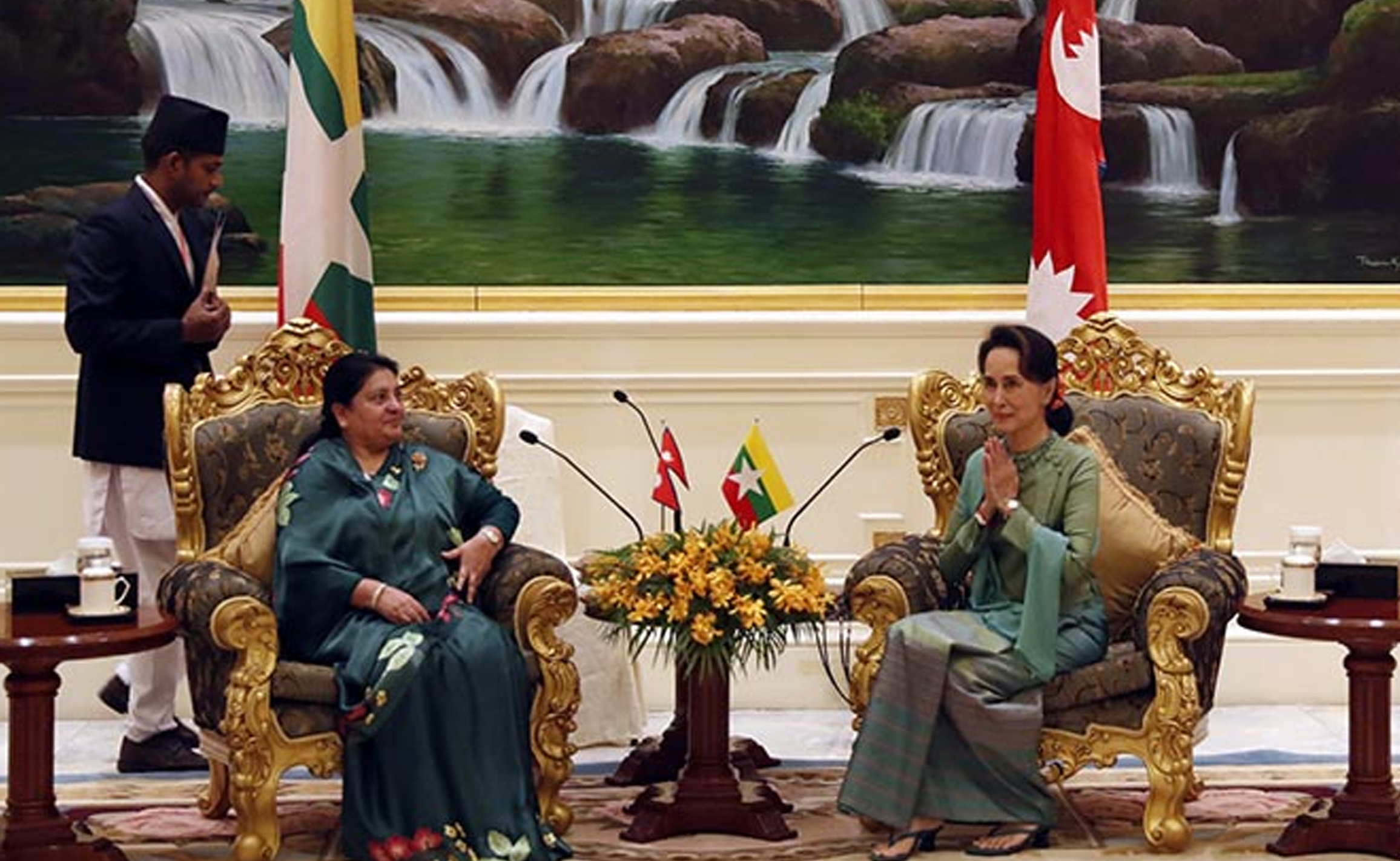 सोमबार राष्ट्रपति भण्डारीको उच्चस्तरीय भ्रमण सम्पन्न गरी स्वदेश फर्कनु भएका परराष्ट्र मन्त्री प्रदीप ज्ञवालीले त्रिभुवन अन्तर्राष्ट्रिय विमानस्थलमा सञ्चारकर्मीमाझ म्यानम्यारका स्टेट काउन्सिलर सूकीले नेपाल भ्रमण वर्षको प्रवर्द्धनका लागि नेपाल आउने चाहना राष्ट्रपति समक्षव्यक्त गरेकाले सरकारले त्यस भ्रमणका लागि प्रबन्ध गर्ने कामलाई अघि बढाइसकेको जनाएको छ ।