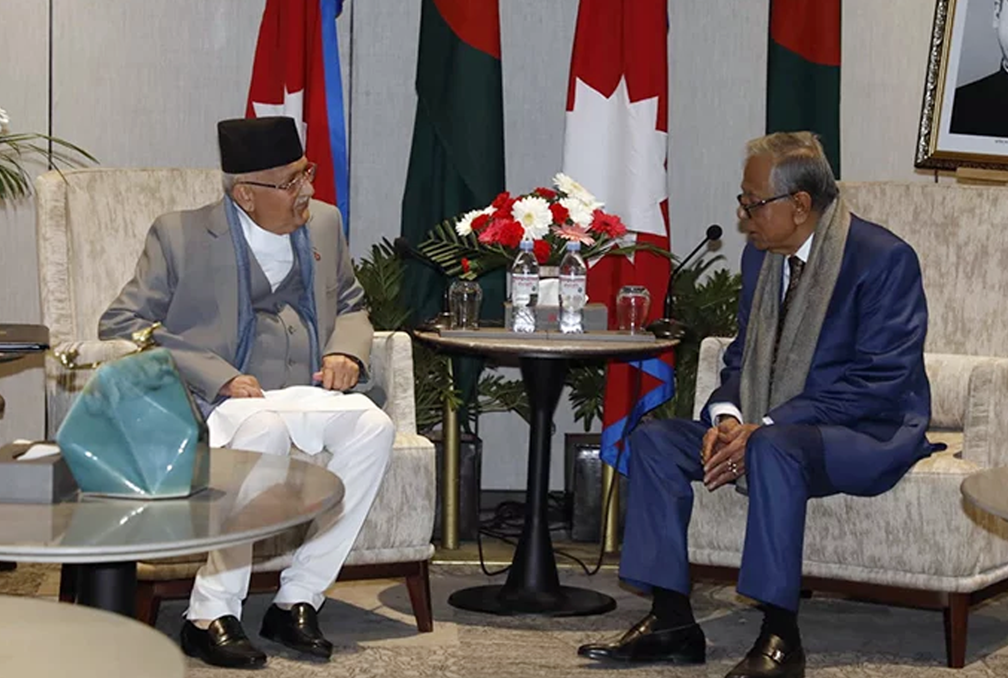 बुधबार काठमाडौँको मेरियट होटलमा बगलादेशका राष्ट्रपति हमिद र प्रधानमन्त्री ओलीबीच भेटवार्ता भएको हो । भेटमा परराष्ट्रमन्त्री प्रदीपकुमार ज्ञवाली, अर्थमन्त्री युवराज खतिवडा, उद्योग वाणिज्य तथा आपर्ति मन्त्री मातृका यादव लगायत सहभागी छन् ।