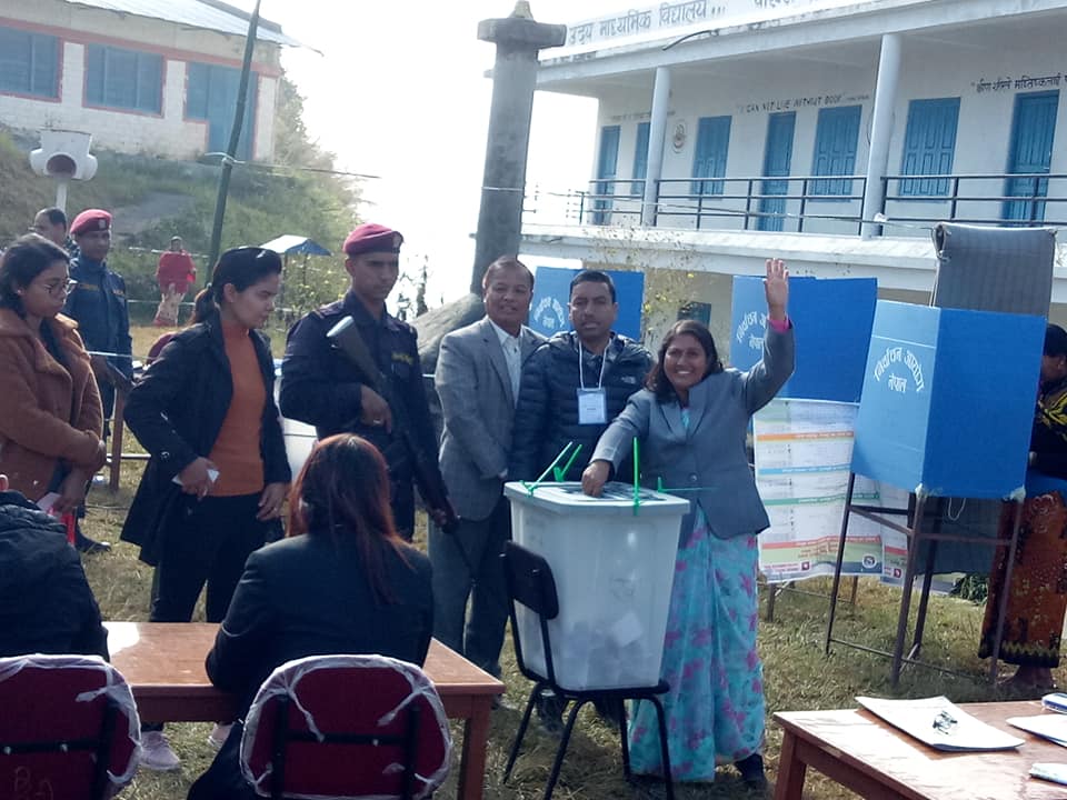 पोखरा–३३ भरतपोखरीस्थित शान्ति उदय माविबाट उनले पौने १० बजे मतदान गरेकी हुन् । कास्की–२ मा उम्मेदवार बने पनि अन्य क्षेत्रमा मतदाता नामावली भएकाले अधिकांश उम्मेदवारले आफैंलाई मतदान गर्न पाउने छैनन्। पाँच राजनीतिक दल र दुई स्वतन्त्र उम्मेदवारबाहेक अरुले आफूलाई मत दिन नपाउने भएका हुन् ।