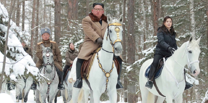 नेता उनले आफ्नी पत्नीसहित माउन्ट पेक्टुको आरोहण गरेका हुन् । माउन्ट पेक्टु पर्वत र सेतो घोडा किम परिवारको वंश परम्परा र नियमसँग जोडिने प्रतिकको रुपमा लिने गरिन्छ ।
