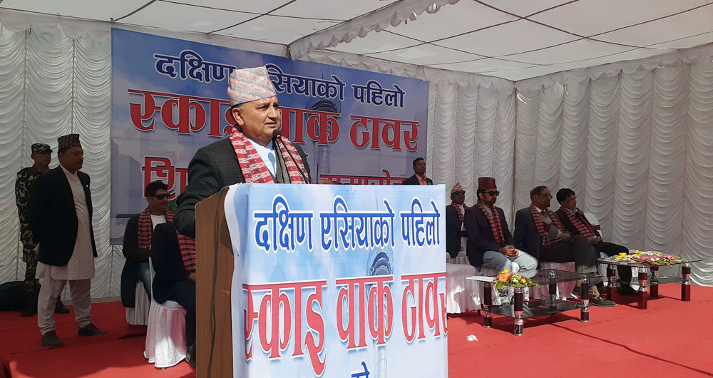 संस्कृति, पर्यटन तथा नागरिक उड्ययन मन्त्री योगेश भट्टराईले नेपाली युवाहरुले अन्तराष्ट्रिय क्षेत्रमा सिकेको ज्ञान सित तथा कमाईको केही रकमलाई नेपालमा प्रयोग गर्दै स्काई वाक टावरको निर्माणमा जुट्नु नेपाल माथिको भरोसा जाग्दै गएको बताउँदै निरासावादी चिन्तनलाई परास्त गर्दै देशमै केही सम्भावना छ भन्ने विश्वास पैदा भएको बताउनुभयो ।