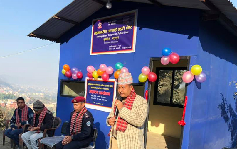भक्तपुर, २४ मंसिर । नेपाल कम्युनिष्ट पार्टी (नेकपा)का केन्द्रीय सदस्य, पूर्वमन्त्री तथा प्रतिनिधिसभाका सांसद महेश बस्नेतले आज एक कार्यक्रमकाबीच अस्थायी प्रहरी चौकीको उद्घाटन गर्नुभएको छ ।