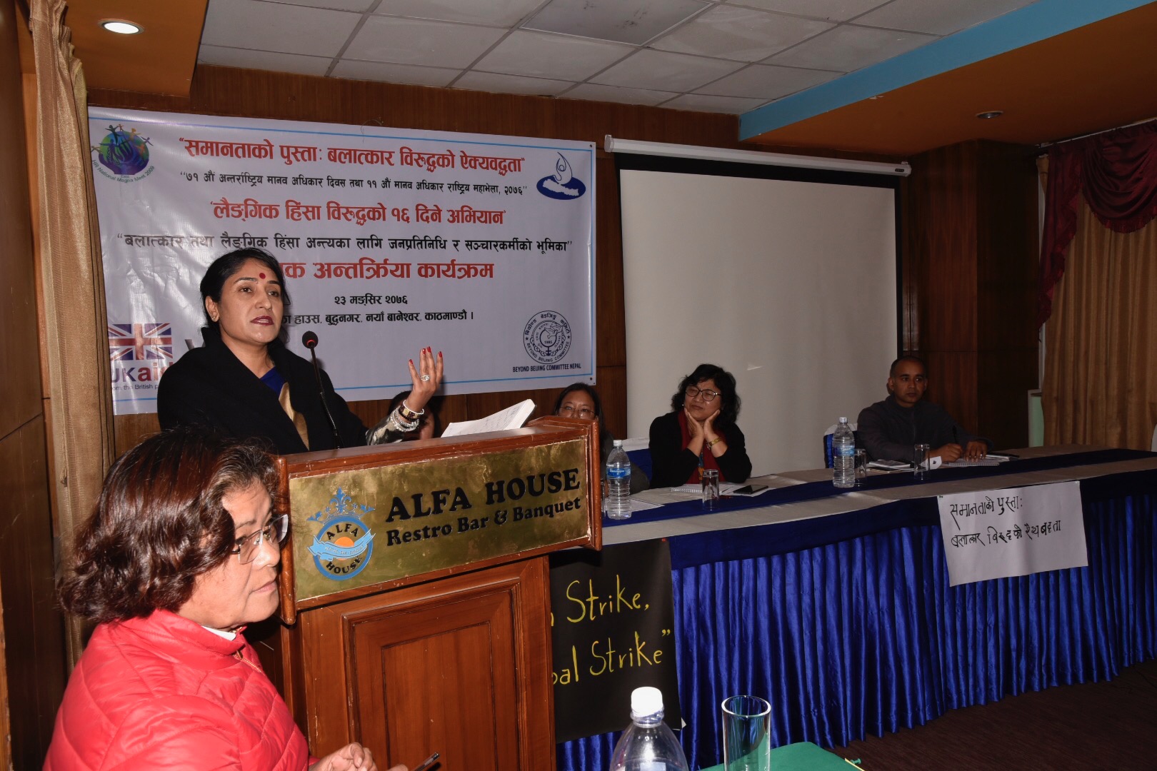 विश्वभर हिंसा विरूद्धको १६ दिने अभियान उत्सवको माहोलमा मनाईरहँदा बियोण्ड बेइजिङ्ग कमिटीद्वारा सोमवार राजधानीमा आयोजित कार्यक्रममा सहभागी वक्ताहरुले सो कुरा बताएका हुन् ।