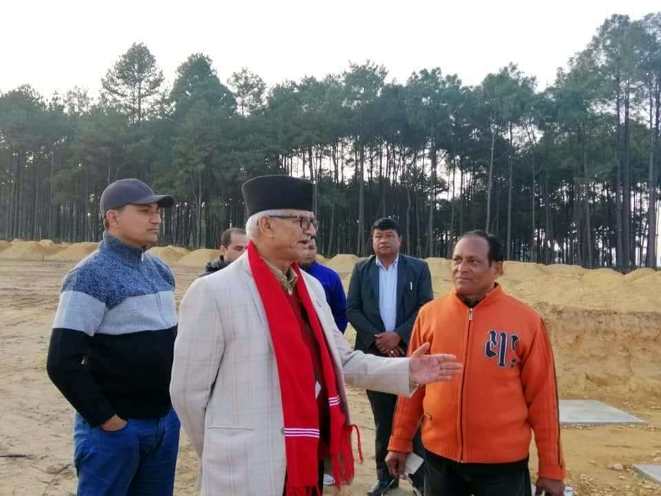 मुख्यमन्त्री पौडेलद्वारा निर्माणधिन प्राविधिक शिक्षालय तथा रङ्गशालाको अनुगमन