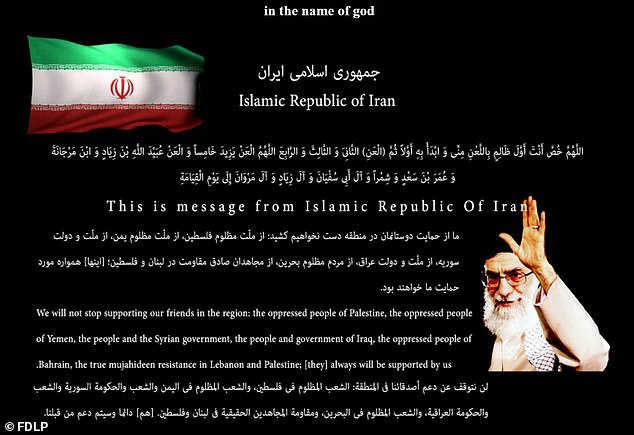 अमेरिकन फेडरल डिपोजिटरी लाइब्रेरी प्रोग्राम (एफडीएलपी) लगइन गर्ने प्रयोगकर्ताले ‘इस्लामिक रिपब्लिक अफ इरान’ लेखिएको कालो ह्याक गरिएको वेब पेज देखिरहेका छन् ।