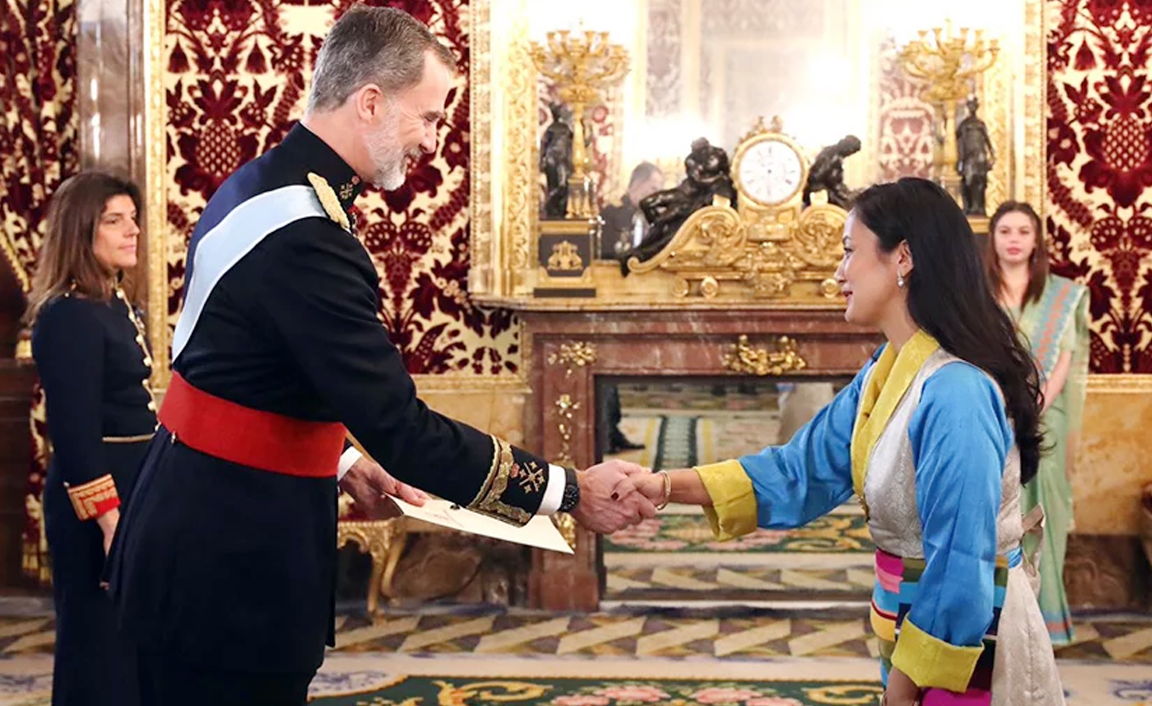 काठमाडौँ, १२ माघ । स्पेनका लागि नेपाली राजदूत दावा फुटी शेर्पाले स्पेनका राजा फेलिपे छैठौंसमक्ष आफ्नो ओहदाको प्रमाणपत्र प्रस्तुत गरेकी छन् ।