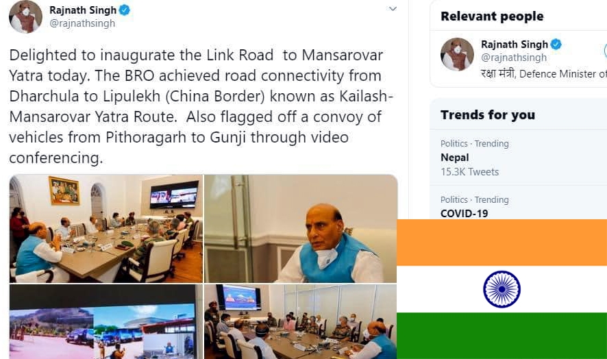 भारतका रक्षामन्त्री राजनाथ सिंहले दिल्लीबाट भिडियो कन्फरेन्समार्फत उक्त सडकको उद्घाटन गरेपछि सञ्चार माध्यमले सार्वजनिक गरेका हुन् । यो विषयमा दिल्लीस्थित नेपाली दूतावास पनि वेखबर छ । दिल्लीस्थित नेपाली दूतावासमा कूटनीतिज्ञमात्र छैनन् । नेपाली सेना, नेपाल प्रहरी र राष्ट्रिय अनुसन्धानका अधिकारी समेत छन्। उनीहरूले त्यहाँ भइरहेका गतिविधिबारे कुनै जानकारी परराष्ट्र मन्त्रालयलाई दिन सकेका छैनन् । यो समाचार आजको अन्नपूर्ण पोस्ट् दैनिकमा सुरेन्द्र काफ्लेले लेखेका छन् ।