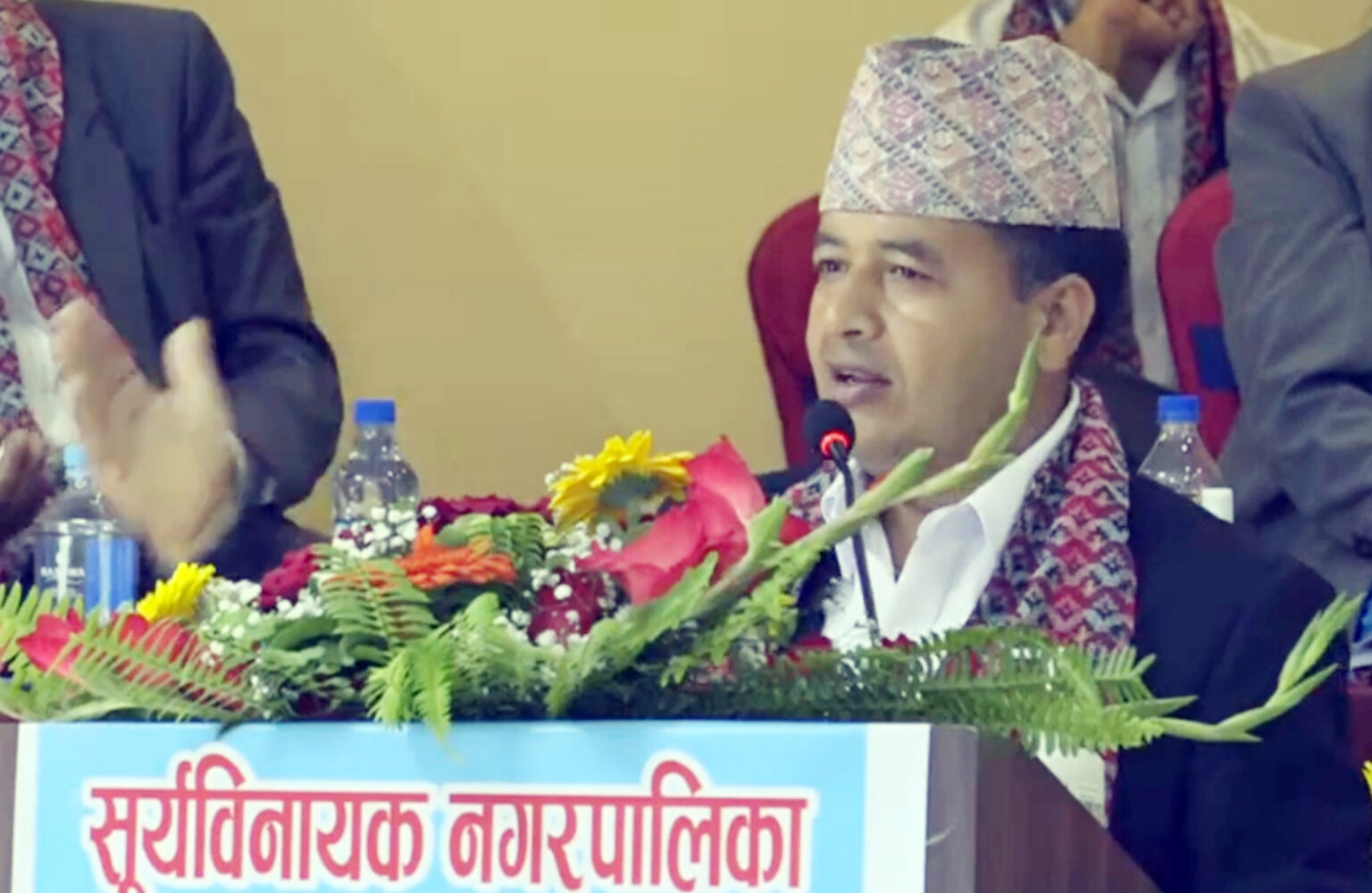 नगरसभालाई शम्बोधन गर्ने क्रममा सूर्यविनायक नगरपालिको नगरसभाको कार्यक्रम शैली स्थानीय तहको उत्कृट नगरसभा भएको वताउनु भएको छ ।