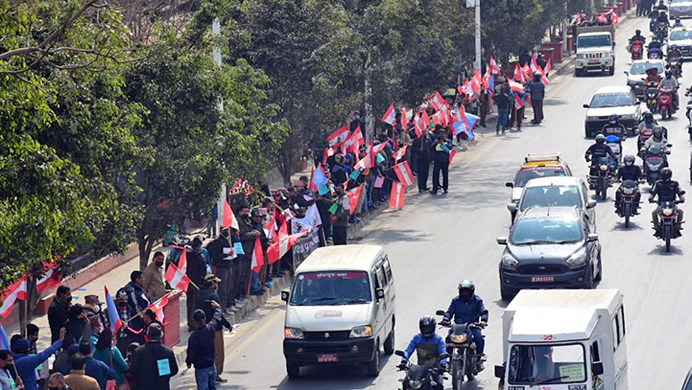 काठमाडौँ, २४ माघ । प्रतिनिधि सभा विघटनविरुद्ध नेपाली कांग्रेसका शुभेच्छुक संस्थाहरूले मौन विरोध प्रदर्शन गरेका छन् ।