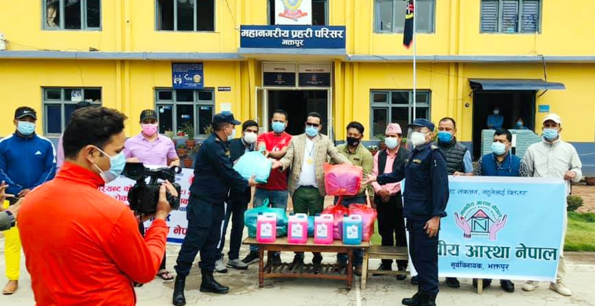 नयाँ भेरियन्ट कोरोना (कोभिड-१९) भाईरसको संक्रमण रोकथाम र नियन्त्रणका लागि आफ्नो घर परिवारको समेत पर्वाह नगरी रात, दिन नभनी २४ सै घण्टा भक्तपुरे जनताको सेवामा खट्ने जनपद, अनुसन्धान र सशस्त्र प्रहरीहरुको सुरक्षाका लागि राष्ट्रिय युवा संघ नेपालको पहलमा, संघका इन्चार्ज समेत रहनुभएका सांसद वस्नेतको बस्नेत संरक्षक रहेको संस्था मानवीय आस्था नेपालको सहयोगमा चार ठाँउमा स्वास्थ्य सामाग्रीहरु हस्तान्तरण गरिएको छ ।
