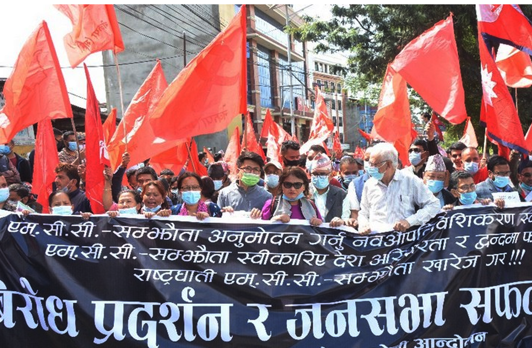 उनीहरुले ‘एमसीसी खारेज गर,एमसीसीविरुद्ध आवाज उठाउनेहरुमाथिको धरपकड बन्द गर जस्ता नारा लगाएका थिए ।