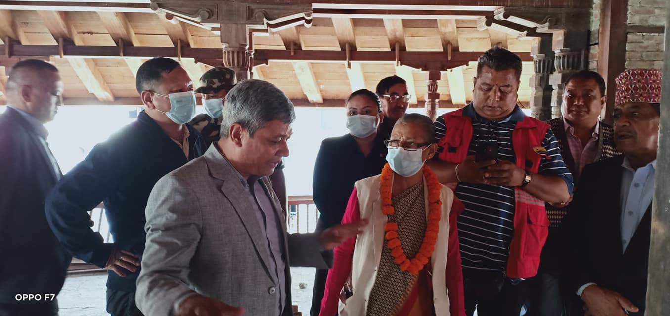 मुख्यमन्त्री शाक्यद्वारा पुनर्निर्माण भइरहेको काष्ठमण्डपको निरिक्षण